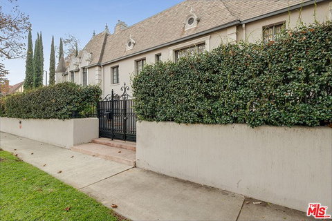 This exceptional townhouse feels like a European villa & a private single family residence. Located in prime Hancock Park, this home is designer done w/the utmost elegance, finest quality, & incredible detail. Enter through the front gates to the private & spacious front courtyard. 3-story formal foyer to spacious public rooms including beautiful formal living rm w/fp, formal dining rm, & gourmet kitchen w/professional appliances, Carrera marble island & counters, & breakfast area. Maid's suite, pantry, & laundry rm off the kitchen. Upstairs are 3 en-suite guest bdrms, each magnificently appointed, as well as the gorgeous master suite. The master suite is much like its own private residence w/fp, kitchenette, dual closets, mezzanine office, & lovely bath. The top floor features a fantastic media room w/bath & kitchenette. This townhouse sits apart from the Sycamore Tower condo complex, has private access to the pool & common areas, & a separate address. 2-car parking & security.