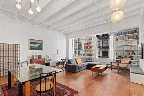 NYC? Paris? Try DTLA! Here is your chance to own a gorgeous, light filled, and rarely available 2 bedroom CORNER LOFT UNIT in heart of downtown's Historic Core. This beautiful and airy space boasts some of the largest square footage in the building with 16' high vintage barreled concrete ceilings, oversized industrial windows wrapping around the unit, hardwood floors throughout, custom lighting, stainless steel appliances, in-unit washer/dryer, brand new HVAC system, and a large primary bedroom with walk in closet and built in's. Directly to the right upon entering the loft, you'll find the secondary/guest bedroom that can easily substitute as a creative studio or home office. This special unit in the Shybary Grand Lofts exemplifies modern city dwelling and is located just a few minutes walk from the famous Grand Central Market, the Bradbury Building, Whole Foods, the Bloc, and the best dining and nightlife DTLA has to offer. The building has some of the lowest HOA dues found in DTLA providing an incredible value for what is included; 24-hour security/front desk concierge, rooftop pool and hot tub, fitness room, and a rooftop lounge area with amazing panoramic views of the DTLA skyline. Come by and see this amazing loft in person and fall in love with all of the excitement that is Downtown Los Angeles.