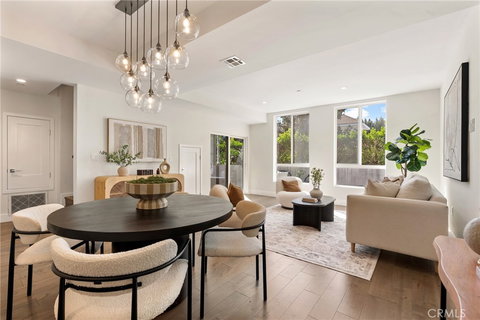 The main level features expansive living and dining spaces filled with natural light from oversized windows, creating a bright and inviting atmosphere. A flexible den provides the perfect setup for a home office, reading nook, or creative space. The open layout flows directly to a private patio, ideal for outdoor dining, entertaining, or simply unwinding. A convenient half bathroom completes the main level.