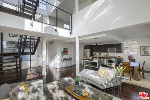 Between the Myra Avenue Bridge and the Manzanita Street gardens stands 4111 Sunset Blvd. Designed and constructed in 2007 by Rothenberg-Sawasy Architects, the Sunset Silver Lake Lofts remain one of the most sought-after Live/work buildings in Silver Lake. Just steps from Sunset Junction, you're within walking distance of some of the neighborhood's best Erewon, Tartine, Intelligentsia, Sweetgreen, Pine & Crane, and La Colombe. This one bedroom, two-bath open-concept New Yorkstyle loft offers the feel of downtown Manhattan in the heart of Silver Lake. This unit could easily be turned into a two bedroom by adding a few stem walls and doors. With soaring 17-foot ceilings, wood floors, and tall east-facing steel-framed windows that flood the space with dappled morning light through the verdant bamboo hedge. The home feels both dramatic and serene. Unit 220 is located in the middle of the complex sheltered from Sunset Blvd, Manzanita and Myra and has only one common wall. This unit enjoys a quieter, more peaceful setting. The sophisticated bi-level live/work layout is open and airy, with expansive white walls perfect for showcasing large-scale art. Step onto your private third story deck above the primary suite and take in views of the Franklin Hills and beyond. Bask in dramatic afternoon sunsets with a bottle of your favorite bubbly. The unit features two full bathrooms, one on each level, along with a stackable laundry closet in the downstairs bathroom. There is two-car tandem underground parking. Modern, architectural, and ideally located this is Silver Lake loft living at its best. Location, sophistication and convenience.