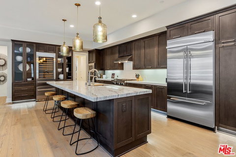 Sophisticated two-story Plan 3 Cleo model home w/coveted corner exposure & direct garage access in prime Playa Vista! Enter from the community courtyard to the media room w/custom built-ins, wet bar & luxurious full bath. Fall in love w/the open floorplan on the main level boasting hardwood floors, top-of-the-line finishes & pocket doors to the deck ideal for indoor/outdoor entertaining. Gourmet chef's kitchen is equipped with an eat-in center island, ss appliances, six-burner range, wine fridge & more. The dining space flows to the living room anchored by windows welcoming floods of light. Relax in the master w/hardwood floors & decadent bath w/dual vanity sink, glass shower & water closet. Features-bright & spacious guest bedrooms w/high ceilings, laundry room, office w/built-in desk & shelves,3 car garage, 2 entry points, secured building with direct elevator access to front door & more. Move-in today & relish quintessential PV living, just blocks from shops, restaurants & more!
