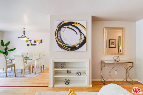 A rare opportunity to own a poolside residence in the Villa Florenze Building. With only ONE common wall, this END UNIT is very private and is at the back of the building NOT facing Bundy Dr. The large living area has beautifully finished real hardwood floors and seamlessly flows into an exceptionally spacious private, garden patio of approx. 400 sq.ft. allowing for an "urban backyard" and DIRECT access to the community pool. The kitchen is brand new with upgraded quartz countertops and stainless steel appliances, bathrooms updated and the common areas of the building have a luxe hotel vibe. HVAC is brand new too, just in time for Summer ! Walk to all of Brentwood's great amenities. 2 Tandem parking spaces and extra storage in garage.