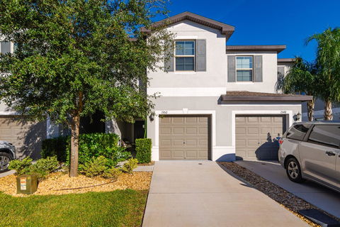 Welcome to this beautifully maintained 3-bedroom, 2.5-bath townhome in a gated Lutz community, offering comfort, convenience, and a peaceful setting. Built in 2021, this two-story home features a bright, open layout with tile flooring throughout the first floor and a spacious kitchen with white shaker cabinets that flows seamlessly into the family room and dining area—perfect for everyday living and entertaining.
