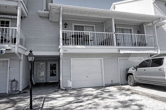 Each unit spans from 1,371 to 2,723 square feet, offering either 2 or 3 bedrooms. Views from the private balconies include pool, trees, and woods. Prices for units range from $208,000 to $410,000. Recent upgrades and renovations enhance the overall appeal of the property.