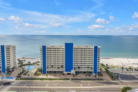 Discover breathtaking, top-floor Gulf views from this fully furnished, turnkey, income producing penthouse studio in Ocean Sands, beautifully positioned in the heart of Madeira Beach. This direct beachfront retreat features an inviting layout with a brand-new HVAC, newer in-unit washer and dryer, newly installed front door with electronic lock, king-size bed, reclining sofa, comfortable sleeper sofa and dinette. Expansive wall-to-wall sliding glass doors o...