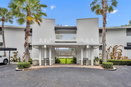 The architectural style reflects Mid-Century Modern design, with beautifully landscaped grounds featuring lush tropical foliage and oak trees. Units include floor-to-ceiling windows and open-concept living areas, allowing natural light to fill the space.