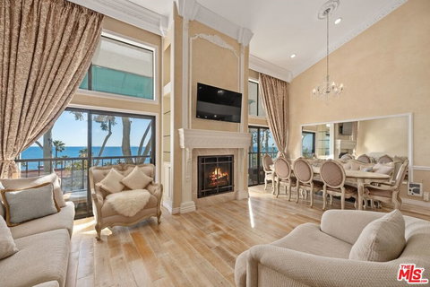 Rare opportunity to own this professionally designed, Malibu sanctuary. The largest unit at Tivoli Cove with spectacular panoramic ocean views. Stunningly remodeled 2 BR, 3 BA., dramatic 2 story end unit condo has imported porcelain white washed floors from Italy, Venetian Plaster walls, all handmade custom cabinets, all new copper plumbing, exceptional kitchen with newer appliances, gorgeous bathrooms with custom handmade tiles, outstanding furniture collection by Michael Amini and chandeliers included in purchase price. Huge fireplace in living room, extra-large balcony with breath taking views of the ocean and the Queen's necklace. Private separate remodeled storage unit. Tivoli Cove is a true gem with direct access to the private beach, ocean front picnic area & B.B.Q's, heated pool, spa, gym, tennis courts, very close to Pepperdine and fabulous restaurants. Live the Malibu dream today!