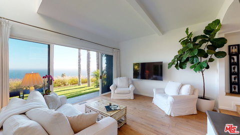 Rare Front Row Architectural Town Home/Condo on the Bluffs with Direct Unobstructed Ocean Views from Living Room, Dining Room, Kitchen & Master Bedroom, Bath & Patio. Breathtaking & Stunning Ocean and Sunset Views from this Modern Mediterranean Inspired Property Nestled in a Private Gated Community Overlooking Broad Beach with only 14 Town Homes. Feels like a Private Home. This is a Luxury Property with High Ceilings, Multi Floors, Two Patios, Grassy Yard, and Updated Flooring & Kitchen. Two Spacious Bedrooms and a Loft that could be used for a Third Bedroom, Office or Workout Room. Master Bath has Dual Sinks & Tiled Vanity, Shower & Jetted Bathtub. There are Fireplaces in Living Room & Master Bedroom. The Resort-like community has a gorgeous pool, spa and tennis court. This is a Malibu Dream Property.