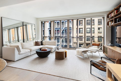 Enjoy refined downtown living in this impeccably designed two-bedroom, two-bath residence at the coveted 1 Great Jones Alley. Conceived by BKSK and set on a rare private gated drive in NoHo, this boutique condominium blends contemporary sophistication with historic charm, offering full-service amenities and serene, design-forward interiors to the highest standards. Residence 6A is an expansive 1,778 square feet filled with natural light and custom high end finishes throughout. A private keyed elevator opens into the entry foyer followed by a loft-like living space with airy 10-foot ceilings. The open-concept great room is designed for both comfort and entertainment with generous living and dining areas accented by stylish wide-plank European oak floors and floor to ceiling windows with glass doors that open to a Juliet balcony. Custom-designed by BKSK for Arclinea, the chef's kitchen features Italian white oak cabinetry, stainless steel accents, Calacatta marble countertops, and a waterfall-edge breakfast bar. The top-of-the-line appliances include a premium Gaggenau five-burner gas cooktop, double wall oven, paneled refrigerator and freezer, under-cabinet wine refrigerator, and built-in dishwasher. The thoughtfully designed split-bedroom layout allows for optimal privacy. The serene primary bedroom suite has space for a sitting area or home office and features a generous walk-in closet and additional storage closet. The luxurious spa-like bathroom is adorned with quartzite slab floors, walls, and countertops complemented by a custom double vanity with Dornbracht fixtures and integrated lighting. The shower is a glass-enclosed, steam rain shower next to the deep soaking tub beautifully clad in quartzite and teak. A second bedroom and bath are finished to the same exceptional standard. Additional apartment features include a stacked, vented washer and dryer, remote-controlled window shades and dimmer lighting throughout. 1 Great Jones Alley offers a discreet and distinguished arrival via its exclusive private alley-one of the few remaining in New York City-ideal for secure and seamless pick-up and drop-off. Residents enjoy an impressive array of amenities, including 24-hour doorman service, a state-of-the-art fitness center by Jay Wright, a tranquil water spa with three thermal baths, a windowed steam room, a private treatment room, and a beautifully landscaped second-floor terrace designed by HM White. Taxes do not reflect abatement for primary residents.