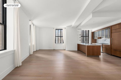 Welcome to 100 Barclay Street, Unit 15L - a stunning and historic Ralph Walker-designed condo conversion in the southernmost part of vibrant Tribeca! This magnificent residence offers approximately 1,613 square feet of luxurious living space in a thoughtfully designed one-level layout. With its prime corner positioning, the unit boasts fantastic south and east exposures, filling the home with abundant natural light and offering breathtaking views over the Perelman Performing Arts Center and the Santiago Calatrava-designed Transit Hall.Enter into the oversized gallery foyer perfect for large are and photographs into a bright and airy open-concept living area, highlighted by modern beamed high ceilings, massive oversized windows, and elegant hardwood floors. The state-of-the-art kitchen is a culinary enthusiast's dream, featuring a sleek center island, brand-new high-end appliances, a dishwasher, and a large window for added charm. The spacious dining area is ideal for entertaining and complements the loft-like living space perfectly.The two generously sized bedrooms include ample custom-built closet space and exquisite beamed ceilings. The en-suite bathrooms elevate relaxation with oversized tubs, stall showers, and modern fixtures. An additional private storage room located in the hallway nearly adds another full room to your apartment. For convenience, enjoy an in-unit washer and dryer and central air for year-round comfort.The building itself offers exceptional amenities, blending pre-war charm with modern luxury: a large pool, jacuzzi, steam room, dry sauna, and a world-class fitness center featuring boxing and yoga rooms, a Pilates studio, and Peloton bikes. Residents also benefit from full-service convenience with a doorman and white-glove concierge services.Beyond the walls of this extraordinary home, Tribeca's vibrant community awaits with top-notch dining, shopping, and cultural experiences. Explore nearby attractions such as Brookfield Place, Westfield World Trade Center, beautiful local parks, and an array of easily accessible transportation options, making commuting and daily errands a breeze.Don't miss this chance to experience unparalleled luxury and comfort in the iconic Tribeca neighborhood. Schedule a viewing today and discover why Unit 15L at 100 Barclay Street is the exceptional choice you've been searching for!