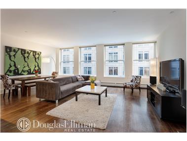 Prewar 2 bedroom, 2 bathroom FiDi loft. Keyed elevator opens to large open living, kitchen, dining area with wall of insulated windows. Chef's kitchen features granite counters, stainless steel appliances, wine cooler, and breakfast bar. Two spa-like marble baths feature Kohler fixtures, and Maestro soaking tub. Apartment also features 9'.6" ceilings, vented w/d, central a/c, 8' solid wood doors, excellent closet space, and private storage room. The Fu...