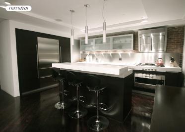CONTRACT SIGNED This is an exquisitely designed 3BR/2.5BA by Italian architect, Barto Bellati!!! At approximately 2385sf, this sprawling unit with four exposures was remodeled with amazing care and thought. The open Wenge kitchen features a Gagganau 5-burner stove, SubZero refrigerator, Fisher & Paykel double-drawer dishwasher and wine chiller, as well as Italian Corian countertops and breakfast bar. The Living Space, complete with your personal media outlet, includes a 10 motorized Dalite Viewing Screen with HD projector, Klipsch surround-sound speaker system, and a Sonos multi-room audio system flooding each room with amazing music from your choice of up to 5 Million songs! The Master Bedroom features double glass doors opening onto a private Juliette Balcony. All of the bedrooms are spacious and have fully customized closets. Upon entering the Master Bath, notice the stone tiles, pebble shower surroundings and 14-in rain-water showerhead. Both full baths are dawned with Dorenbracht vanities, heated floors and Duravit in-wall facilities. This unit has direct, key-locked elevator access, exposed brick, BR-111 Maduro Chestnut flooring and includes an enormous 200sf storage room. This pet-friendly Condo, built in the early 1900s to house printing machinery, is conveniently located at the cross-roads of SoHo, the West Village and TriBeCa. Were steps away from the Hudson River Recreational Walk and Piers, as well as close to mass-transit. Apartment Features: East exposure, North exposure, South exposure, West exposure, Balcony, Full garden view, Prewar detail, Exposed brick, Floors - hardwood, Modern kitchen, Great closet space, Washer/dryer, Dishwasher Building Features: