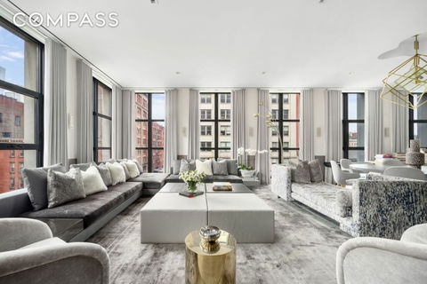 One of a kind, intelligently designed and sprawling 4,912 SF, this 4 bedroom corner home with children's playroom and home office/media room features tremendous scale and sophistication. It is highlighted by 27 floor to ceiling windows, 11 foot ceilings and 3 fireplaces located on one of Tribeca's most well regarded blocks with southern and western views. As one enters the home through its large foyer with walk-in coat closet, they are struck with the sc...
