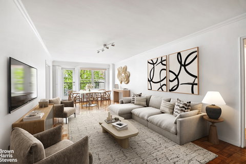 This generously sized, south-facing one-bedroom with a windowed home office and large balcony at 1199 Park Avenue combines space, functionality, and a premier Carnegie Hill address in a full-service cooperative. The expansive living and dining areas open to a south-facing balcony with lovely treetop views overlooking a charming street and the striking Neo-Gothic facade of 1185 Park Avenue. The king-sized bedroom is filled with natural light and also enjoys southern exposures over the picturesque street. A separate windowed home office or guest room provides flexible, highly usable additional space. The kitchen offers an opportunity for thoughtful updating and customization. Additional features include a gracious entry foyer, excellent closet space-including multiple walk-ins-well-maintained parquet hardwood floors throughout, and recently updated through-the-wall air conditioning in every room. In addition to a beautiful planted roof deck with an herb garden and sunset views over the Reservoir, 1199 Park Avenue provides residents a wide array of luxury amenities, including full-time doorman and concierge services, laundry on every other floor, private storage (included for every unit), bike storage, an onsite garage (independently operated, discounted for residents), and a live-in superintendent, all with notably low monthly maintenance for the area. Pets under 50-lbs are welcome, pied-a-terres are considered on a case-by-case basis, and up to 70% financing is permitted. Located on the corner of Park Avenue and East 94th Street in the the heart of Carnegie Hill, 1199 Park is close to countless shops, restaurants, and the 4/5/6/Q trains at 96th Street. Please note this listing is a co-exclusive