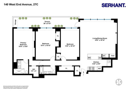 New to market and rarely available, this high floor three-bedroom, two bath home is flooded with light and offers open city views with partial river views. The layout is fantastic. A large living and dining room with custom cabinetry gives you real space to lounge and entertain, and it opens directly to a renovated 36 foot long private terrace. The terrace is large enough for dining, lounging, and plants, and includes a dedicated outdoor storage shed big enough to store bicycles. Off the living area, there is also a built in desk nook, well suited for work or homework, and a bar with wine fridge. Fully gut and custom renovated in 2018, this home features hardwood oak floors, recessed ceiling lighting throughout, and a beautifully updated kitchen and baths. The kitchen is nicely sized with custom cabinetry, Caesarstone counters, Miele appliances, and a Sub Zero fridge. Both bathrooms feature double vanities. All three bedrooms are generously sized and feature thoughtfully integrated, custom built-in cabinetry for excellent storage. The primary fits a king bed with a walk-in closet. The highly sought-after, full-service Lincoln Towers cooperative offers a 24-hour doorman and concierge, live in super, central laundry, fitness room, bike room, and additional storage. Residents also enjoy private gardens and a park like setting with playgrounds, basketball courts, a pickleball court, and picnic areas. Maintenance includes all utilities -- water, gas, and electric. There is an ongoing monthly capital contribution of $184.75.