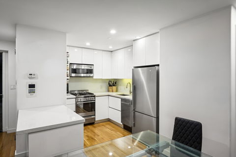 Apartment 2A at 148 East 24th Street is the only residence on the second floor, creating a uniquely private and quiet home that feels like your own full-floor retreat. One of the largest one-bedrooms in the building at approximately 800 square feet, the layout provides living, dining, and work-from-home space that are hard to find at this price point. Central air conditioning and modern finishes throughout make the space as comfortable as it is functional. Just step out of your apt. to find the building's gym, which feels like a natural extension of the home, perfect for a quick no excuse workout between work calls. Inside, the king-sized bedroom offers generous proportions with room for additional furniture, creating a true primary suite. The open kitchen is anchored by an island and features custom white lacquer cabinetry, stainless steel appliances, and Quartz stone countertops, all flowing seamlessly into the living and dining area for easy cooking and entertaining. Adding to the appeal is a substantial bonus storage room accessed from within the apartment, a hidden asset that must be seen in person to be fully appreciated. This extra space is perfect for luggage, seasonal items, hobby gear, or anything else you want to store away, giving the home a level of practicality that stands out in the market. All of this is wrapped in a calm, quiet ambiance that makes the apartment feel like a true home. Located in a prime downtown pocket where Gramercy, Flatiron, and Kips Bay converge, ONE48 offers 24-Hour Attended Lobby Landscaped and Furnished Common Roof Terrace Bike Storage Available On-Site Storage Available Laundry facility in addition to your very own in unit washer and dryer. ONE48 places you steps from transportation, parks, acclaimed restaurants, and everyday conveniences. From here, you can easily access Midtown and Downtown offices, neighborhood cafes, and vibrant nightlife, while coming home to a space that offers full-floor privacy and a lifestyle that truly exceeds what most one-bedrooms deliver. There is currently an assessment of $368.33/mo.