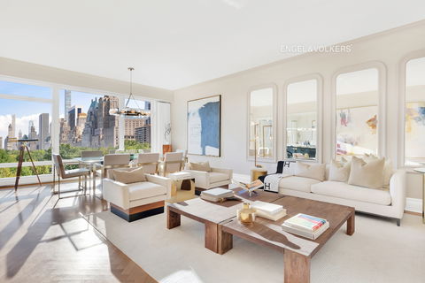 Each of the four bedrooms offers generous scale and privacy. The primary suite is set directly on Central Park and features two walk-in closets and a marble-clad five-fixture bath.