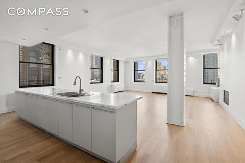 This gorgeous 2400SF 3-bedroom, 3.5-bath condo with newly refinished solid oak floors and kitchen cabinetry has panoramic views of downtown overlooking City Hall Park and up to the Chrysler and Empire State buildings in Midtown. Located in the historic American Tract Society Building and converted to modern luxury loft condos, this fabulous property has 10.5-foot high ceilings and oversized windows, allowing for all-day sunlight and mesmerizing City views....