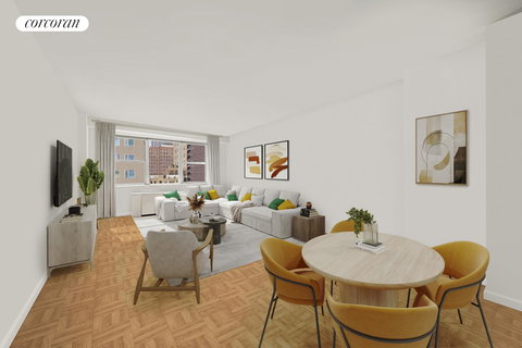 Welcome to this Oversized One-Bedroom in the heart of Murray Hill bathed in natural light from large South-facing windows. Currently configured as a two-bedroom, the apartment features a flexible layout with a removable wall-easily convertible back to a true one-bedroom with an expansive living and dining area perfect for entertaining. The renovated kitchen boasts granite countertops, a sleek backsplash, and updated appliances. A renovated bathroom with a jacuzzi tub, abundant custom California Closets, and beautifully maintained parquet floors throughout completes the picture. Warren House is a full-service postwar condominium offering a landscaped roof deck with sweeping skyline views, full-time doorman, resident manager, central laundry, and on-site parking garage. Ideally located near major subway lines, the crosstown bus, and neighborhood favorites like Fairway and Trader Joe's. Several photos are virtually edited. The real estate taxes reflect a 17.5% reduction under the primary residence condo abatement. Purchasers are advised to consult a tax professional to determine eligibility. Taxes are $1,032.18 per month without the abatement. Tenant is in place through August 2026. There is a capital assessment of $1,846 per month through February 2030.