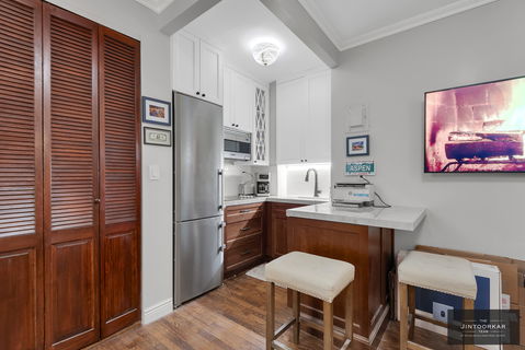 Discover a charming apartment in the heart of Carnegie Hill, located at 160 East 91st Street. This well appointed unit, Apt 3B, is situated on the 3rd floor of an 8-floor building that originally completed construction in 1903 and was converted in 1985. The building features a total of 125 units and is equipped with essential amenities including a doorman and elevator access for convenience. Apt 3B boasts an array of modern key unit features designed for both comfort and functionality. The kitchen is equipped with stainless steel appliances, including a Blomberg refrigerator, complemented by quartz countertops and a subway tile backsplash. The inclusion of a farm sink adds a touch of elegance, making this space ideal for culinary enthusiasts. Throughout the apartment, you will find oak hardwood flooring that enhances the warmth and character of the living space. Custom doors with black door hinges add a contemporary flair, while recessed lighting illuminates the rooms, creating a welcoming atmosphere. Nine-foot ceilings provide an airy feel, making the apartment feel open and spacious. This unit is designed with practicality in mind, featuring two large windows that flood the living area with natural light, enhancing the overall ambiance. A modern video intercom system offers added security and convenience. The custom radiator covers contribute to the clean lines and modern aesthetic of the apartment. The building offers additional amenities, including a laundry facility, bike room, and storage space, making it practical for urban living. Verizon Fios is also available, ensuring high-speed internet access. Located in Carnegie Hill, residents enjoy easy access to major transportation options, with the 4, 5, and 6 subway lines nearby. The property is just three blocks from Central Park, providing a wealth of outdoor recreational opportunities. Local shopping and fine dining establishments are also within reach, enhancing the vibrant neighborhood experience. This apartment offers an excellent opportunity to reside in a well-established community while enjoying modern conveniences and classic charm. Schedule a viewing today to explore all this exceptional unit has to offer