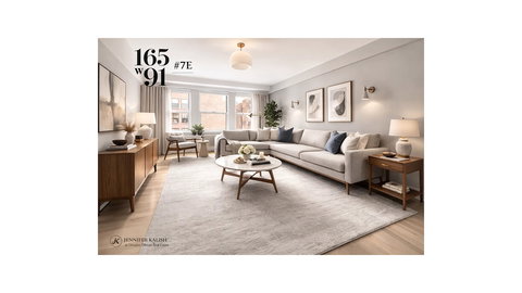 virtually staged Introducing a beautifully appointed residence at The Mirabeau that seamlessly combines architectural elegance with contemporary refinement. Bathed in southern light, this expansive two-bedroom plus home office home spans approximately 1,582 square feet and offers a thoughtfully curated layout designed for both comfort and sophistication. From the moment you enter, the scale and proportion are immediately apparent. Soaring beamed ceilings, oversized windows, rich oak flooring, and refined pre-war detailing create a timeless backdrop, while central air conditioning and modern upgrades ensure effortless living. The kitchen is both striking and functional, anchored by sleek white glass countertops and a marble backsplash. Premium appliances-including a Bertazzoni gas range, Miele refrigerator, and Fisher & Paykel dishwasher-complement abundant custom cabinetry. The kitchen flows naturally into a generous dining area and an inviting central den, offering flexibility for entertaining or relaxed daily living. The primary suite is privately positioned and enjoys tranquil southern exposures. Two well-proportioned closets, including a walk-in, provide exceptional storage. The en-suite bath features refined finishes and a rain shower for a spa-like experience. The secondary bedroom offers northern light and easy access to a beautifully finished marble bath with a deep soaking tub. A separate home office adds valuable versatility, ideal for remote work, creative pursuits, or guest overflow. Located at 165 West 91st Street, The Mirabeau is a distinguished full-service pre-war condominium at the corner of 91st Street and Amsterdam Avenue. Originally constructed in 1926 and thoughtfully re-envisioned in 2013, the building offers residents a landscaped roof deck, fitness center, playroom, bike storage, 24-hour doorman, live-in resident manager, and attentive staff. Neighborhood highlights include Barney Greengrass, Whole Foods, dozens of great restaurants and easy access to the 1/2/3 and B/C subway lines-and only two blocks from Central Park. Monthly real estate taxes shown reflect a 17.5% abatement which applies to ownership as a primary resident, monthly real estate taxes are $1,456 a month otherwise.
