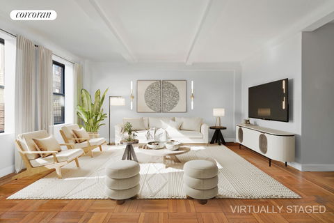 Prime Lincoln Square location, just two buildings away from Central Park, perfectly located on one of the UWS's most coveted blocks High-floor corner unit with triple exposures (south, east, north) and abundant natural light Convertible 3-bedroom layout currently configured as a spacious 2-bedroom, 2-bath Expansive living room with four large windows and sun-drenched afternoon light Windowed kitchen with sliding doors, ample storage, counter space, and bar seating Primary bedroom features partial Central Park views, double exposure, walk-in closet, and en-suite marble bath Second bedroom with double exposure, three windows, and views of landmarked brownstones Six full-height closets, including two floor-to-ceiling entry closets; in-unit WASHER/DRYER PERMITTED Elegant pre-war details: hardwood floors, 9-foot beamed ceilings, efficient layout with no wasted space Charming 1926 co-op with landscaped courtyard, live-in manager, laundry, bike room, and rentable storage Pet-friendly and allows pied-à-terre, gifting, and co-purchasing; up to 80% financing permitted Neighborhood: next to Central Park, near Lincoln Center, top dining, shops, and C/B subway