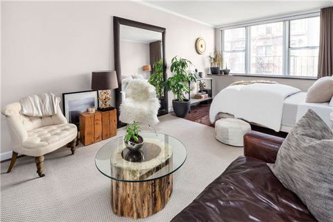 Greenwich Village elegance and charm. Apartment 4E is a sweet studio nestled in the heart of the Village. Western facing with beautiful natural sunlight, this special unit is your respite from the bustling city. Recently renovated and appointed with crown molding, recessed lighting, hardwood floors, through-the-wall air-conditioning, ceiling fan, stainless steel appliances, tiled bathroom with pocket door, and custom closets. Perfect for a starter apar...