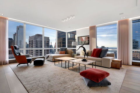 This turn-key 6 bedroom, 5.5 bathroom masterpiece perfectly blends contemporary design with classic sophistication. The floor-to-ceiling windows throughout the 4,100 square foot apartment showcase views that stretch from the Hudson River across the New York skyline and will take your breath away. The living and dining spaces are sun-drenched and stunning, with a luxurious leather-paneled lounge area. The apartment has been renovated to perfection by MSK...