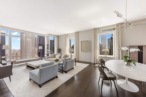 Residence 37A at the Baccarat Hotel and Residences is defined by exceptional design and refined elegance, making it one of the most desirable and best-selling lines in the building. This spectacular apartment is a premier 3-bedroom, 3.5-bathroom condominium nestled within the renowned Baccarat Hotel and Residences, offering an unparalleled Manhattan lifestyle. Spanning approximately 2,525 square feet, this home features 11-foot ceilings and a generous layout with three exposures: North, South, and East. Floor-to-ceiling windows provide breathtaking views of Central Park and the spectacular Manhattan skyline from every room, including the master bathroom and master closet.