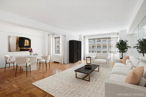 Discover a spacious two-bedroom, two-bath residence with an abundance of natural light and an unbeatable location. As you step into the home, you're welcomed by a large foyer featuring classic black and white marble flooring. The south-facing living room, adjacent to the dining area, receives beautiful light throughout the day and offers generous space for gatherings. The galley kitchen includes a convenient service entrance. A hallway leads to the primary suite, complete with an ensuite bath and three closets, including two walk-ins. The second bedroom is also generously sized, and there's a hallway bath that serves guests as well. This coop presents a wonderful opportunity to purchase at an affordable price and personalize it into your dream home. Washer/dryers, pets, and pied- -terres are allowed. The coop supports 65% financing and permits co-purchasing, guarantors, and trusts. 200 East 57th Street offers valuable amenities, including a full-time doorman and concierge, a renovated roof deck, optional under-building parking, a gym, a laundry room, a bike room, and optional in-building extra storage for rent. All Electric (A/C + Heating), Cable and WiFi are included in the Monthly Maintenance. With Whole Foods on the block and top shopping and dining options just outside your door, convenience is at your fingertips. Flip tax is 2%.