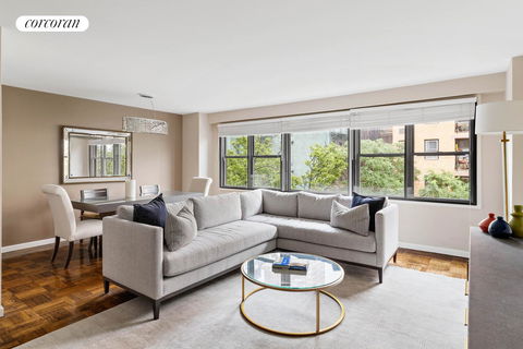 Welcome to Residence 4C at 200 East 74th Street, a bright and elegant junior 4 or convertible 2-bedroom residence offering the perfect balance of space, functionality, and value in a well-located full-service cooperative. Upon entry, you're greeted by a generously sized walk-in closet, setting the tone for the home's exceptional storage throughout. The expansive living room is filled with natural light through three oversized north-facing CitiQuiet windows that frame peaceful treetop views. The layout easily accommodates a distinct dining area for a six-person table, while an additional nook near the foyer offers flexibility for a home office, gallery wall, or added storage.The home's flexible layout lends itself to a potential second bedroom conversion, offering added versatility to suit your needs (alternate floor plan available). The kitchen is thoughtfully integrated into the living and dining space, featuring stainless steel appliances including a 4-burner gas Venti range, dishwasher, and full-size refrigerator. Ample counter space and multiple closets including pantry storage makes this kitchen as practical as it is functional. The king-sized primary bedroom is both spacious and serene, complete with a deep walk-in closet and continued treetop exposures. The bathroom features a shower/tub combination with a rainfall showerhead and a vanity with storage. Additional highlights include a large closet off the bedroom hallway and newly updated AC units. 200 East 74th Street is a professionally managed 21-story post-war cooperative known for its spacious layouts, abundant storage, and full-service experience. Residents enjoy a full-time staff, live-in resident manager, renovated lobby and hallways, fitness center, laundry room, and a resident lounge/party room. Additional conveniences include a shareholder garage, bike storage, and private storage options. Positioned at the corner of Third Avenue and 74th Street, the building offers seamless access to the 6 and Q trains, crosstown and uptown/downtown buses, and some of the neighborhood's most iconic dining, including JG Melon. Pet-friendly and flexible, the co-op permits up to 75% financing and considers pieds-à-terre, and gifting on a case-by-case basis. There is currently an assessment for $356.00