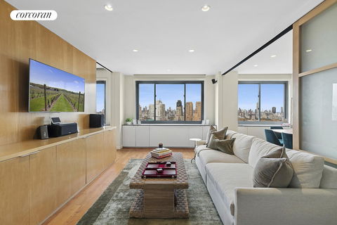 Breathtaking Views from Every Room! Imagine living in an Upper West Side home that captures panoramic vistas stretching from the George Washington Bridge to the 59th Street Bridge - a truly magnificent sweep of skyline and Central Park views from every room. Perched on the top-floor of a full-service co-op, this beautifully updated two-bedroom, two-bath offers an inviting open-concept layout with oversized windows that flood the space with natural light. Versatile sliding doors allow you to customize the layout to your needs, creating a dining room, a home office, or an additional bedroom. A custom built-in room divider includes ample shelving and a TV nook perfect for entertaining guests or curling up at home with your favorite show. Sophisticated Bedrooms & Spa-Like Baths The spacious primary bedroom suite features room for a king-sized bed and sitting area, along with a custom walk-in closet, built-in bookshelves, motorized blackout shades, and a luxurious en suite bath with a deep soaking tub. The second bathroom uniquely offers a sleek steam shower with elegant tilework and the added convenience of a Miele washer and dryer. An open chef's kitchen flows into an informal dining area, perfect for hosting, and has been recently updated with a new Viking five-burner range, Viking microwave and Zephyr wine cooler. Upgraded details like a Miele dishwasher, an elegant Kohler faucet, and a garbage disposal add everyday conveniences to the kitchen, while the Sub-Zero fridge and floor-to-ceiling pantries add exceptional storage and style. Building and Neighborhood Highlights: Elegantly renovated lobby and new modern hallways, completing Spring 2026. Beautifully renovated roof deck with 360 Manhattan views, just one flight up. 24-hour doorperson building with live-in superintendent. Basement storage and bike rooms, plus 24-hour laundry room. Steps from the 72nd street 1/2/3 express trains and nearby B/C subway lines. Moments from Lincoln Center, Beacon Theatre, Café Luxembourg, Magnolia Baker, Trader Joe's, H-Mart, The Strand Bookstore, Bloomingdale's and more. Just two blocks from the iconic Central Park. With the peace and privacy of the top floor, this rare gem offers a lifestyle of luxury, convenience, and unmatched views. Don't miss your opportunity to own a piece of the Manhattan skyline.