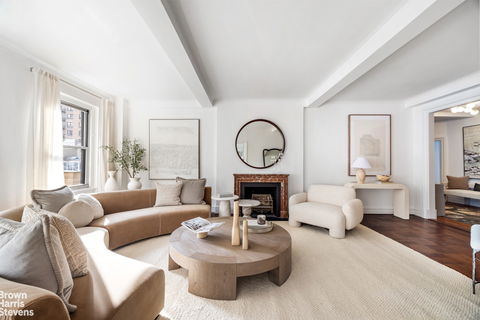 NEW TO MARKET! An exceptionally rare offering of a majestic, sun-drenched, all exterior-facing corner classic 9-into-8-room home in one of Carnegie Hill's most sought-after Emery Roth pre-war full-service luxury cooperatives. The B-line residences at 21 East 87th Street seldom come to market and are prized for their unparalleled light, grand proportions and a perfectly balanced layout that lives as beautifully as it entertains, as demonstrated in Residence 6B. This is a once in a generation opportunity to create a uniquely glorious home on a coveted park block surrounded by the best that life on the Upper East Side has to offer. Enter off of a semi-private landing and be welcomed into a gracious entry gallery from which both the entertaining spaces and private quarters seamlessly flow. Before you is a grand living room in which warm eastern sun pours through oversized double-hung windows overlooking Madison Avenue. At approximately 25 feet deep, the living room feels both expansive and inviting, anchored by a handsome decorative marble fireplace and framed by high beamed ceilings carried throughout the home. Immediately adjacent to the living room is the formal dining room, also grand in scale and adorned by the sunlight and views of Madison Avenue. Accessed through an elegant pair of French doors, it joins the living room in creating a flawless space for entertaining at scale. Rare in pre-war design, the kitchen enjoys sun-filled exterior avenue exposures as well. Having absorbed a second service room, the double-windowed eat-in kitchen is massive, offering a space that's primed for a top-tier re-imagining of an enviable dining kitchen with ample room for every top-of-the-line appliance you might want, abundant counter space, vast storage, and a casual dining area as well. It has an adjacent pantry with a prep sink on one side and a sizable east-facing staff room/home office with an en-suite full bathroom on the other. The private quarters are all ideally arranged on the south side of the apartment, crowned by a king-sized corner primary bedroom suite bathed in southeastern sun, with a windowed 4-fixtured primary bathroom and a large dressing room. The bedroom adjacent the primary suite faces south over 87th Street and is currently in use as a library serviced by an en-suite windowed full bathroom with a stall shower. There are two more sizable bedrooms with share a windowed full bathroom with a stall shower. Both bedrooms face south over East 87th Street, and each of them has its own large walk-in closet. Built in 1927 and conceived by famed architect Emery Roth, 21 East 87th Street is one of Carnegie Hill's most beloved buildings. A full-time doorman and live-in resident manager provide polished and attentive service, and the building features a gym, central laundry, bicycle storage and private storage for each residence. Residents enjoy immediate access to Central Park, Museum Mile and the finest cultural and educational institutions, restaurants, entertainment and shopping that New York City has to offer. Pets are welcome. There is a flip tax of 2% of the purchase price, and financing is allowed up to 65%. There is a monthly capital assessment in the amount of $500.64 through 2026.