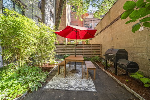 Welcome to your hidden oasis in the heart of Gramercy's alluring Irving Place. This rare and enchanting studio residence is highlighted by the beautifully landscaped 476 square foot private garden-a true suburban jewel in this vibrant neighborhood, perfect for gardening, entertaining and al fresco dining under a canopy of sun and shade. Enjoy morning coffee with a book, host a dinner party or brunch and more with a screen door for fresh air inside. The lofty layout boasts 9 foot ceilings and four oversized windows flooding the home with natural sunny light and frame serene views of your lush outdoor sanctuary, creating a bright and calming atmosphere year-round. The smart layout features a dedicated sleeping area, work from home nook overlooking the garden and room for a dining table also benefiting from the lush view. The bathroom has been renovated with a sleek shower stall and white subway tiling. Bamboo floors, custom overhead lighting, massive built-in storage plus under storage area complete this idyllic home. Boutique elevator building nestled between Union Square, Stuyvesant Park and Gramercy Park offers a premium location and privacy with live-in resident manager, laundry room, complimentary private and bike storage and supremely low maintenance. Enjoy east access to the Farmer's Market, Trader Joe's, Whole Foods and Union Square offering massive transportation options (4, 5, 6, L, N, Q, R, W) and East 14th Street cross town Select bus service. Pre-friendly building policies allow for pied-a-terres, parents purchasing for children, co-purchasers and gifts, each subject to board approval and subletting after two years. All measurements and square footages are approximate and all information should be confirmed by customer.