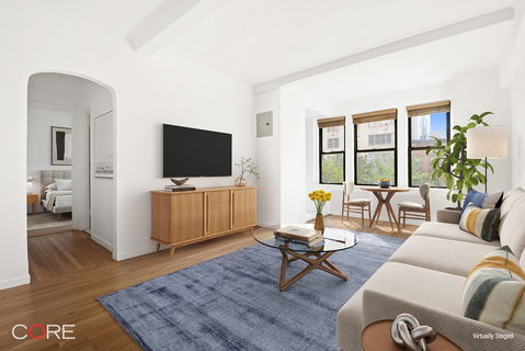 Sponsor sale, no board approval! Come see this sunny one-bedroom home with tree-top views, perfectly located in prime Upper East Side! In good condition, this charming home features classic prewar details such as high beamed ceilings, an arched doorway, and inlaid oak floors. A comfortable foyer with two closets leads to a well-proportioned living room. The generous bedroom can accommodate a king-size bed. 225 East 79th Street is an intimate pre-war c...