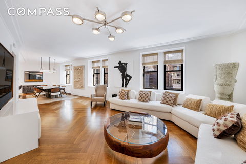 Spanning 2,974 square feet, this beautifully proportioned four-bedroom, four-and-a-half-bathroom residence with an additional library or optional fifth bedroom blends pre-war elegance with modern luxury and exceptional spatial flow. A gracious entry gallery leads into a sun-drenched east-facing corner living room overlooking Broadway, offering a dramatic yet refined setting for both everyday living and entertaining. Just off the living area, a cozy library provides a flexible retreat for reading, work, or relaxation. The custom chef’s kitchen is both striking and functional, featuring white lacquer and stained oak cabinetry, Calacatta Gold countertops and backsplash, and a full suite of top-tier appliances by Gaggenau, Miele, and Sub-Zero, complemented by modern finishes by Pembrooke & Ives. The open layout allows for seamless connection between the kitchen, dining, and living areas. The generously scaled primary bedroom suite offers a serene private retreat, complete with a large dressing area, custom California walk in closets and an exquisite windowed bathroom clad in floor-to-ceiling Calacatta Gold, Nero Gold, and Tundra Grey marble, accented by Haisa marble mosaics. Spa-level appointments include Lefroy Brooks fixtures, a freestanding soaking tub, double-sink vanity, and radiant heated floors. Three additional bedrooms, each with its own en-suite bathroom, provide comfort and privacy throughout the home. These baths are finished with Lefroy Brooks fixtures, Glassos tile floors and walls, custom frameless medicine cabinets, Kohler under-mount porcelain sinks, Duravit by Starck wall-mounted toilets, and Kohler under-mount bathtubs with polished Glassos slab decks within the showers. An elegant powder room for guests, finished in Nordic Grey Stone slab with a polished Glassos countertop atop a nickel vanity pedestal, along with a discreet laundry area equipped with a Bosch washer and dryer, completes the residence. Additional highlights include five-inch herringbone floors with walnut inlay in the living areas, double-paned insulated windows, 10-foot ceilings, individual climate control in every room, Valli & Valli hardware, and Lefroy Brooks fixtures throughout. The residence is fully pre-wired for motorized window shades, advanced home automation, and purchaser-installed AV systems, with access to Time Warner Cable or Verizon Fios. Originally built in 1901 by William Waldorf, The Astor is a distinguished turn-of-the-century landmark condominium that has been masterfully reimagined by Pembrooke & Ives Architects. The transformation seamlessly blends contemporary sophistication with classic pre-war elegance, while incorporating modern conveniences to meet today’s lifestyle expectations. This pet-friendly, full-service building offers a comprehensive suite of amenities, including a 24-hour concierge, a live-in resident manager, a spacious fitness center, and a children’s playroom, among other thoughtful features. Ideally situated in the heart of the Upper West Side landmark district, The Astor is surrounded by everyday conveniences, charming cafés, cultural institutions, major transportation, and beloved green spaces. Citarella, Fairway and Trader Joe's are just outside your door, with Zabar’s a short stroll north and the 72nd Street subway station only three blocks south. Wellness and fitness options such as SoulCycle and Upper West Side Yoga and Wellness are also nearby. An extraordinary array of cultural and dining experiences awaits just beyond the lobby, including the American Museum of Natural History, Lincoln Center, the Metropolitan Opera House, The Beacon Theatre, and The New-York Historical Society. The neighborhood is equally celebrated for its exceptional dining scene, featuring favorites such as Tavern on the Green, Levain Bakery, Café Luxembourg, Sushi of Gari, Barney Greengrass, Bar Boulud, Peacefood, and many more—offering an unparalleled Upper West Side lifestyle. The apartment has been lightly used as