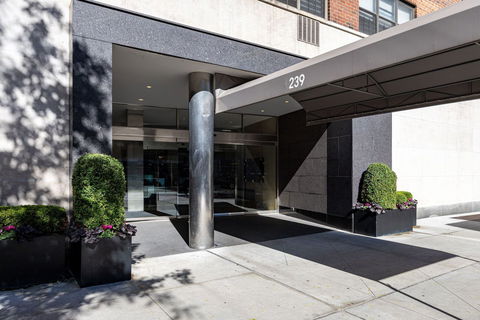 This exceptionally spacious and well-proportioned corner two-bedroom, two-bathroom home is now available at 239 East 79th Street. The south-facing apartment offers expansive city views overlooking the double-wide 79th Street. The living room spans over 30 feet and features a separate dining foyer, perfect for entertaining. Newly painted and featuring elegant crown moldings, the apartment boasts beautiful parquet floors throughout. The two generously sized...