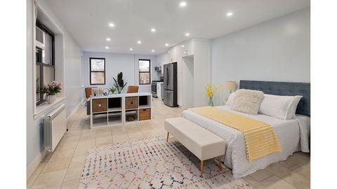 Brand New Renovated Corner Jumbo Studio with low monthly charges can be easily converted to a junior one bedroom. Meticulously renovated and efficiently designed floorplan that provides you the separation of space allowing you to design and tailor the areas you want in your new home, There are six oversized windows that surround the entire apartment giving the space an open and airy feeling and letting in abundant light streaming in throughout the day. A proper entry foyer leads one into the dining area that comfortably seats parties of four or even more. There is a private home office that allows meetings without disruption, away from the large open main space. A well-proportioned living room can be sectioned off to entertain while preparing wonderful meals before moving into the dining room.Streamlined and refined, a brand-new kitchen has white porcelain tiled back splash with complimentary white shaker cabinets to the ceiling, under cabinet lighting, and marble countertops spanning across the kitchen giving you a lot of room for meal preparation. There is a generous double-height storage pantry. Brand-new high-end appliances, built-in microwave, five burner stovetop with grill & oven, two door refrigerator with a double freezer and a whisper quiet Bosch dishwasher complete this exquisite kitchen. The sleeping alcove can accommodate either a queen or a king size bed with some furniture, and can be partitioned into a more private double windowed bedroom with a barn door for entry - choose what works best for you! indowed sleek bathroom has new fixtures, a Toto toilet and modern porcelain tiles throughout. Skim coated walls, tiled flooring, new light fixtures include ceiling fans, modern slim line radiators & a new built in window air conditioner at the top of the window. There is a huge customized walk-in closet in addition to an entry foyer closet .This move-in ready apartment is a great starter apartment as your primary residence or a perfect pied-a-terre. This Coop is one of the most sought pristine elevator buildings in Inwood surrounded by public green space and situated on a tranquil tree-lined street directly across the street from Inwood Hill Park and the Hudson River, Financially sound (with low monthly charges) and one of the few with an underground parking garage (reasonable wait list), There is a resident super, Locked cage for packages, bike storage (available immediately), new laundry room and is pet-friendly. It also offers a liberal sublet policy, 90-percent financing is permitted, but 80-percent is requested, co-purchasing and gifted funds towards purchase are considered case-by-case. Convenient to A and 1 train lines and to Metro North with easy access to all major Metropolitan Highways. There is a local Green Market every Saturday, cafes, and restaurants.