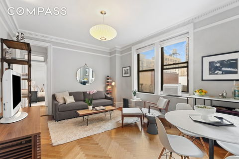 Here's your Move-in Ready One Bedroom home situated in a beautiful pre-war co-op on the corner of West 84th and Broadway. This bright and welcoming home has an enviable, windowed kitchen with lots of storage and counter space. Quiet and full of good vibes; northern-facing with lots of sky and Upper West Side views. This notable architect-designed building is The Alameda, a well-run co-op that welcomes you with its double-height marble lobby and friendly staff. 24-hour doorman/attended lobby, Resident Manager, fitness room, and beautifully landscaped "green" roof terrace with Hudson River & midtown Views. Bike storage, on site laundry, pets with board approval. Very convenient to Riverside and Central Parks, shopping, specialty markets, dining, and lots of trains (1/2/3 and C/D). Pied a terre use not allowed but great for your primary residence. Welcome home!