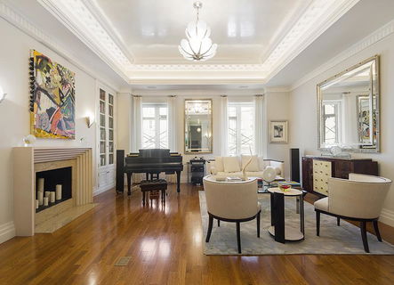 You will not find an apartment like this anywhere on the Upper West Side (or the Upper East Side for that matter). This home is a rare combination of a town house and doorman/elevator condominium, all rolled into one. This magnificent and sophisticated apartment features three bedrooms, three bathrooms, a 12Â? coffered ceiling in the living room, a wood-burning fire place, a laundry room, and a quiet balcony with treetop views off the master bedroom for your morning coffee or some wine before dinner. The renovation is top-of-the-line and state-of-the-art including a mirrored bar in the master bedroom, voluminous custom-designed closets throughout, and a built-in audio system. The apartment encompasses three levels featuring all the privacy of a triplex-like home (see floor plan). There are only six short steps between each level. In its previous life at the turn of the century, the building was two separate town houses, but it is now a pet-friendly condo with a part-time doorman, and just a stroll away from Central Park.