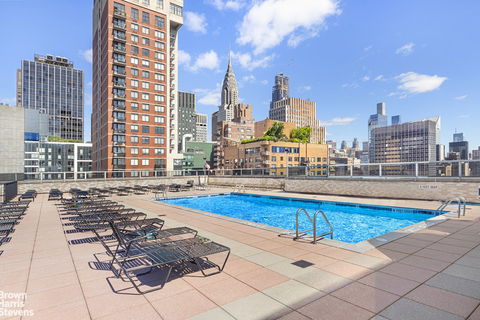 THE CHURCHILL BRAND NEW TO MARKET!!! Experience a unique opportunity to reside in this exceptional 16th-floor convertible three-bedroom, two-bathroom home with a private terrace. This bright and airy residence features a highly efficient layout with southwest exposure, filling the home with natural light throughout the day. Enter through the spacious foyer and into the heart of the home, where picture windows offer stunning water views. Slide open the glass doors to relax on your private terrace. The dining area, which can easily be converted into a third bedroom, adds to the home's versatility. The L-shaped, windowed kitchen is ideally designed with white cabinetry, granite countertops and stainless steel appliances. Two generously sized, split bedrooms provide ample closet space, with one featuring an en-suite windowed bath. Beautiful hardwood flooring throughout and an abundance of closets completes this lovely home. Residents of The Churchill enjoy exceptional service and a myriad of amenities, including a 24-hour door staff, concierge, convenient laundry on every floor, fitness center, sauna, and a welcoming residents lounge. The building also offers outdoor indulgence with newly landscaped rooftop sun decks providing panoramic views, an inviting outdoor pool, valet service, a bicycle room, and a garage. Situated in a prime location, this residence provides easy access to markets, shopping, dining, Grand Central, and various transportation options. The Churchill permits subletting, investors, co-purchasing, and pied-a-terre's. There is an assessment of $873.34 until 10/31/2026 (Local Law 11)