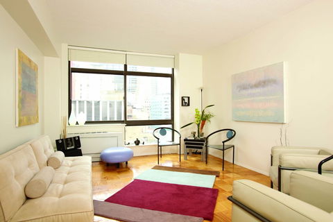 Looking for a one bedroom with a home office or nursery near Tudor City and Grand Central? Welcome home to this high floor newly painted 1.5 bath condo home featuring a spacious west facing living /dining room with iconic city views and an open plan with well-equipped galley kitchen. The master bedroom, also with cityscape views, and en-suite bath, has a wall of closets and off the foyer is a powder room. This intelligently designed home offers a bonus ro...