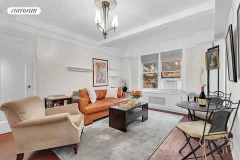 Apartment 5C at 304 West 75th Street is a bright and quiet studio in a full-service doorman building in a prime Upper West Side location. The building is situated on a pretty tree-lined block just down the street from the beauty and recreation of Riverside Park and proximate to every convenience. Prewar details include high-beamed ceilings and original moldings. Natural light is drawn in through east-facing windows overlooking the building's landscaped gar...