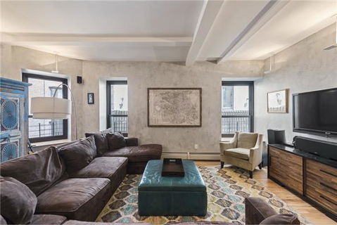 A radiant corner co-op with northern and western exposure, this gorgeous 2-bedroom, 2-bathroom home is a seamless blend of modern polish and pre-war charm. Features of the home include beautiful hardwood floors, beamed ceilings, a trio of original columns, and an open plan layout.Past a formal entryway foyer thoughtfully adorned with a pair of large closets the home flows into an expansive, light-filled living and dining area. Just off the dining space is ...