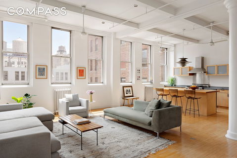 A perfect composition of light, scale, and livability, Residence 9B at 32 West 20th Street is a quintessential three-bedroom Flatiron loft defined by its soaring ceilings, massive south- and east-facing windows and open, sunny disposition. Owned, designed and occupied for the past several decades by a producer and photographer, the home is both a creative expression and the perfect backdrop for creation. Enter through the gallery foyer to the great room, ...