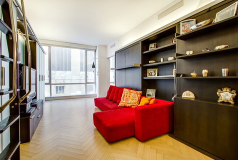 This large 2-bedroom, 2-bath apartment at the Urban Glass House is the epitome of modern downtown living with floor-to-ceiling windows, 10' +/- ceilings and interiors designed by Annabelle Selldorf. An open Bulthaup chef?s kitchen boasts stainless steel countertops, Kuppersbusch, Sub-Zero, and Miele appliances, and a Viking wine-cooler. The ideal floorplan provides an exceptional balance of privacy and ease, with a large master suite, second bedroom, and s...