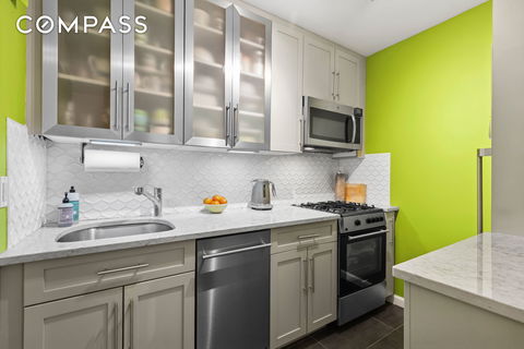 New for the New Year! Move right into this renovated 1 Bedroom Co-op in a full-service building on the Upper East Side. Renovated kitchen, large living/dining room, great layout. Good light via double exposures, but quiet and well set up for work-from-home. 330 East 79th Street has a 24-hour doorman/attended lobby, on-site garage (separate fee), fitness center (separate fee), outdoor courtyard and onsite Resident Manager. Welcoming lobby and friendly staff. Crosstown bus, the Q and 6 trains are all convenient. 20% down required; Pied-a-terre use, pets to 50 lbs & co-purchasing all allowed with board approval. Monthly maintenance includes current assessment @ $140.40 through 2/27 for building capital improvements.