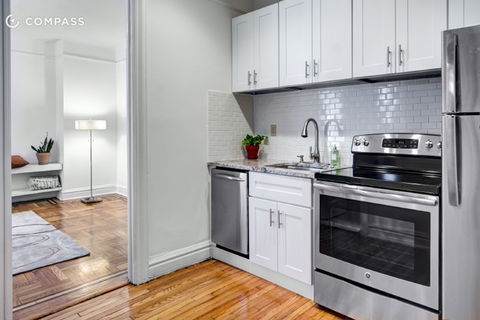 YOUR OWN LITTLE TOWNHOUSE! This oversized and mint condition one bedroom maisonette with private 77th Street entrance has a sunny southern exposure, high 9' ceilings, pre-war details and newly refurbished herringbone hardwood floors. The spacious kitchen was beautifully renovated and features a full suite of stainless steel appliances, gorgeous Caesarstone counters and white subway tile backsplash along with amazing storage for all your cookware in brand n...