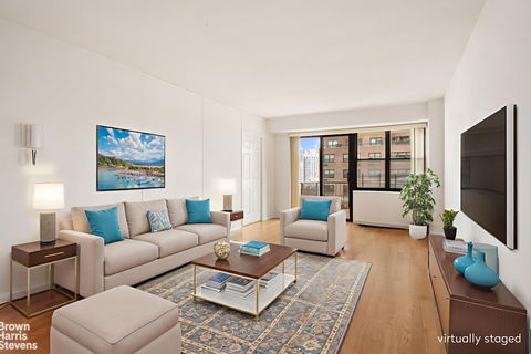 Sun-Drenched High-Floor Convertible 2BR in Full-Service Condo Welcome to this spacious, sun-filled high-floor convertible two-bedroom, one-bath home, offering open city views and modern comfort in a prime Upper East Side location. Step into a well-proportioned living and dining area that seamlessly flows to a north-facing balcony-perfect for morning coffee or evening cocktails while taking in expansive city views. The windowed kitchen provides ample cabinet and counter space, ideal for everyday cooking or entertaining. The primary bedroom is generously sized, easily accommodating a king-sized bed and additional furnishings, all bathed in natural light from its unobstructed west-facing window. The second bedroom (or home office/guest room) is also spacious, with bright north-facing views. This pet-friendly, full-service building is loaded with amenities including a 24-hour doorman, live-in resident manager, roof deck, bike room, luggage storage, central laundry, and an on-site garage. Washer/dryers are permitted with board approval. The East Winds is a well-established condominium located near Central Park and Carl Schurz Park, with convenient access to the Q & 6 subway lines, crosstown bus service, and some of the city's best dining and shopping options. Don't miss this opportunity to own a bright, flexible home in one of the Upper East Side's most desirable buildings. Pets are welcome.