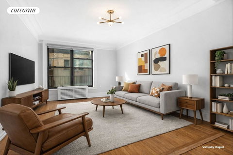 Babe Ruth's Former Building! Welcome to residence 5D at 345 West 88th Street, a sun-filled, South-Facing and truly expansive 2 bedroom/2 Bath home with a large Eat-In Kitchen all wrapped in the timeless charm of a distinguished Prewar Cooperatives on one of the Upper West Side's most coveted blocks. Step through a gracious separate entry foyer, complete with 2 coat closets, setting the tone for the home's exceptional storage and thoughtful layout. The oversized living room easily accommodates a large sectional sofa with abundant space remaining for a full dining area, perfect for everyday living and entertaining. Both bedrooms are impressively scaled, each large enough for a King Size bed, with room to space for nightstands and dressers. The chef's windowed eat in kitchen is a standout feature, offering a breakfast bar, extensive cabinetry, generous counter space, and full-size appliances including a dishwasher, four burner stove, and an in unit washer/dryer. Two windowed full bathrooms, each with a large soaking tub, enhance the home's comfort and prewar appeal. Additional apartment highlights include: 9'1" high ceilings, arched entryways, 2 Juliet Balconies, hardwood floors, custom light fixtures, a Washer/Dryer, large double-pained picture windows & 7 closets throughout . 345 West 88th Street is a Landmarked boutique 9 story Neo-Renaissance Part-Time Doorman/Elevator Prewar Co-Op building built in 1914 by famed architects Rouse & Goldstone and converted into a Co-Op in 1988. The building is handicap accessible & boasts a small but elegant entry lobby, a large laundry room, bike room, storage room (Unit 5D does not need to be on the wait list for this), community room with a lending library & a ping-pong table as well as a live-in resident manager. The unit has video intercom. Perfectly positioned just steps from Riverside Park and only 2 minutes from the nearest entrance to the #1 Subway line at 87th and Broadway. The neighborhood is rich with conveniences, including a brand new Key Food at 88th & Broadway, Trader Joe's, Whole Foods, and an array of restaurants, cafés, and boutique shops. This Pet-Friendly Co-Op (Dogs up to 30 pounds) allows 80% financing. Additionally, subletting, co-purchasing, guarantors and pied-à-terre arrangements are allowed with board approval Washer/Dryers are allowed and the unit already has one installed Fun Fact: Baseball legend Babe Ruth, the "Sultan of Swat," lived in this very building during his years with the New York Yankees from 1929 to 1940-adding a touch of historic magic to an already exceptional home